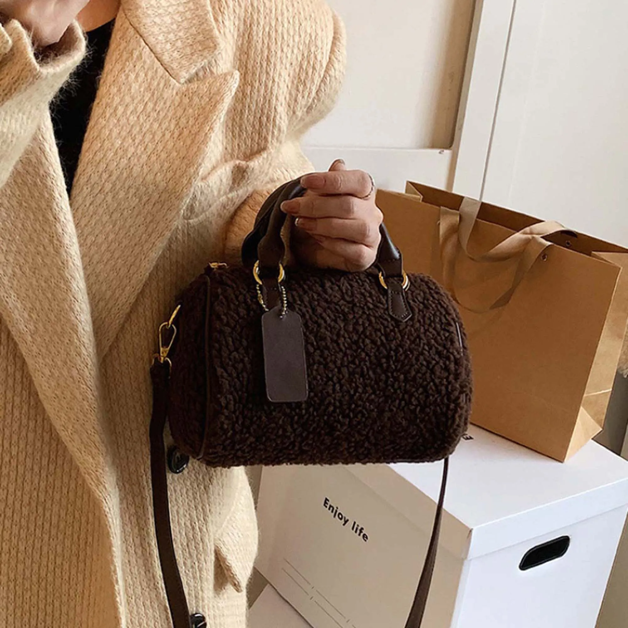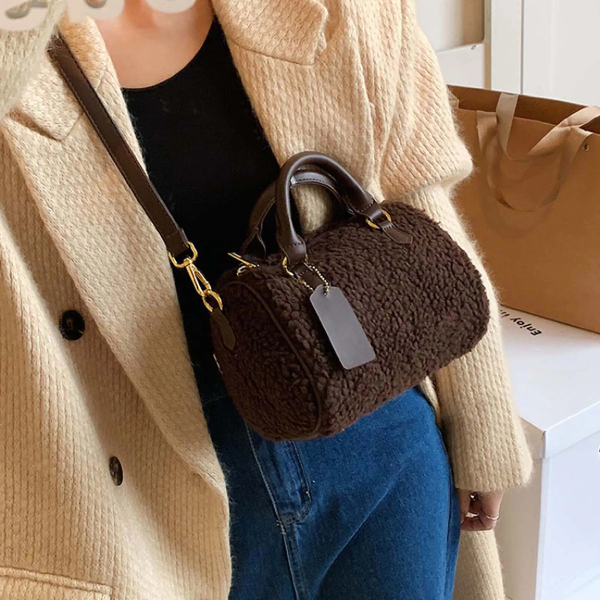 Women’s Crossbody Bags Zipper Closure Stylish Furry Design Handbag for Daily Life Party Vacation and More